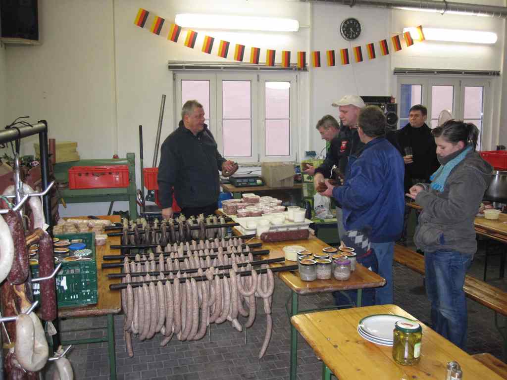Das 2.Schlachtefest fand am 09.02.13 in der Vereinshalle statt. Über 40 Mitglieder nahmen daran teil. Alle Teilnehmer konnten sich vor Ort mit frischen Gehackten, Blutwurst und anderen Köstlichkeiten stärken. Zum Verkauf gab es diesmal Gehacktes, Salamis, Leberwurst, Blutwurst, Sülze, Fleischwurst,... Vielen Dank an unsere Fleischer und an alle Helfer!