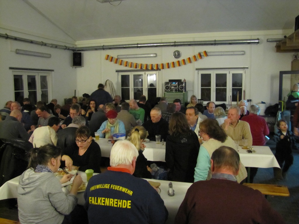 In diesem Jahr fand das zweite Eisbeinessen am 16.11.13 im Vereinsgebäude statt. 180 Eisbeine und 70 Kassler mit Sauerkraut wurden zubereitet und verkauft. Aufgrund des großen Andrangs musste zusätzlich auch die Fahrzeughalle der Feuerwehr kurzzeitig beräumt werden, um unseren Gästen einen Platz zu bieten. Es war wieder eine gelungene Veranstaltung.