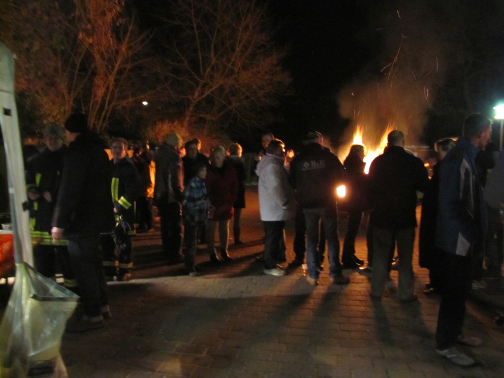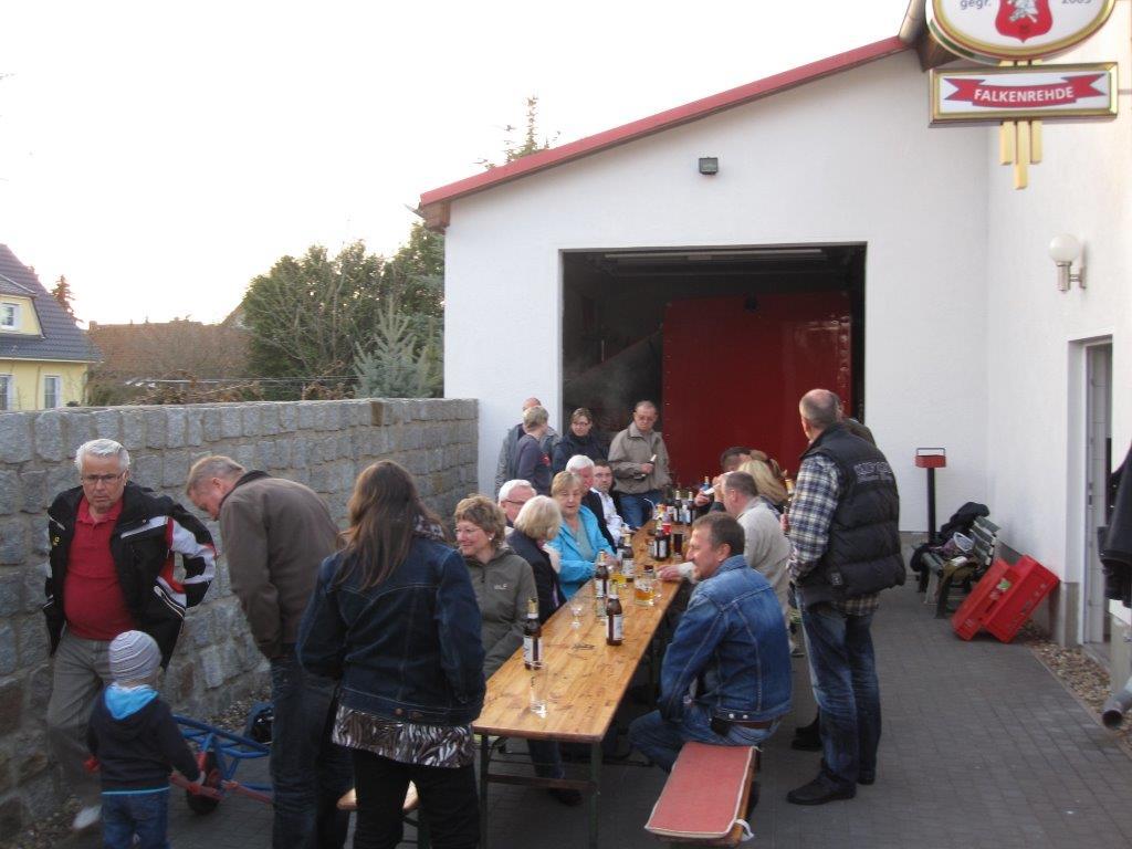 Leider musste in diesem Jahr das Osterfeuer an das Dorfgemeinschaftshaus verlegt werden. Grund dafür waren die winterlichen Bedingungen, die ein Entzünden des Feuers in der Sandscholle für unmöglich machte. Trotz zeitweise leichten Schneefalls fanden sich viele Leute aus Falkenrehde und der Umgebung ein. Bei selbstgebackenen Knüppelteig, Glühwein, Erbsensuppe und Essen vom Grill konnte ein gemütlicher Abend verlebt werden. Zum Einsatz kamen wieder unsere "etwas andere" Feuerschale und der vereinseigene Ausschankwagen. Es war wieder eine gelungene Veranstaltung.