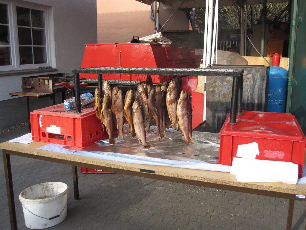 Das 5.Räucherfest fand am 20.04.13 statt. Um die zwanzig Mitglieder nahmen an der Veranstaltung teil. Wie gewohnt wurden Forellen und Salamis geräuchert. Als kleinen Imbiss zwischendurch gab es auch wieder eine Fischsoljanka. Am späten Abend wurde dann zum Wärmen die Feuerschale entzündet. Es war ein gelungener Abend.