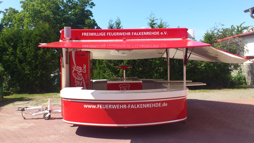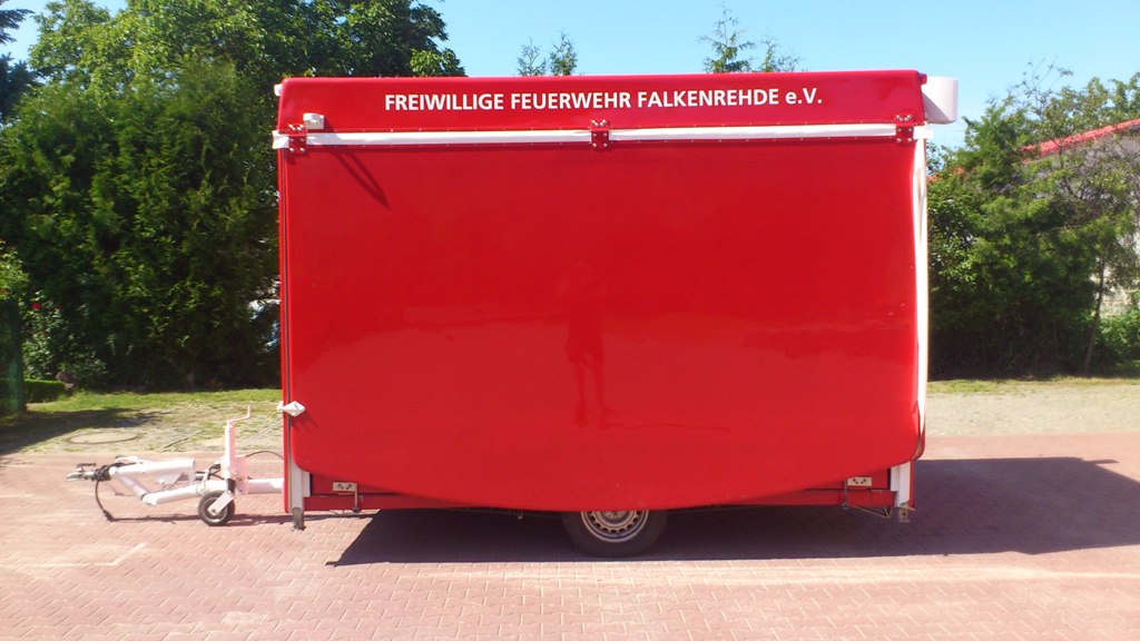 Der Anhänger dient zur Versorgung unserer Gäste beim Osterfeuer, Dorffest,... Er wurde 2012/13 für unsere Belange von Vereinsmitgliedern umgebaut. Der Schankwagen ist ein Vereinsfahrzeug. KEINE VERMIETUNG!